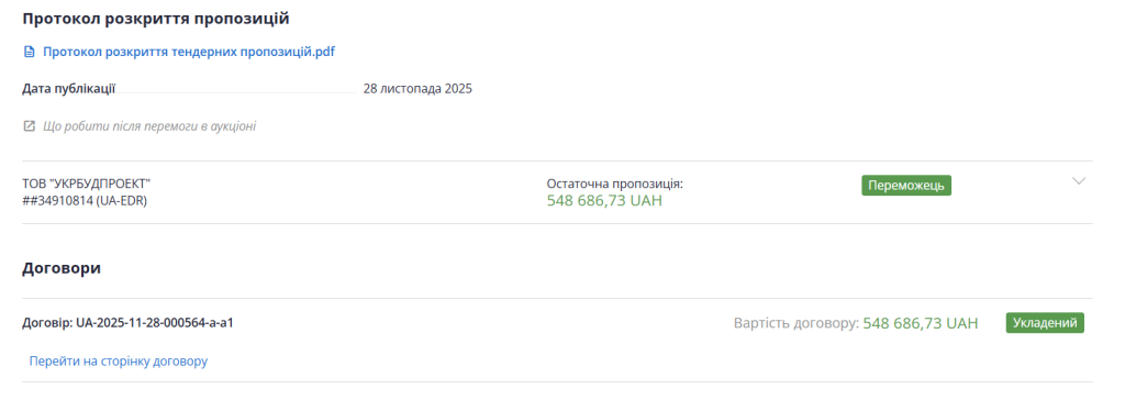 Об этом говорится на сайте электронной системы публичных закупок «Prozorro».