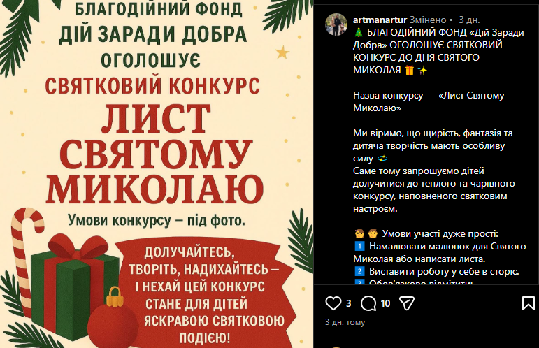 «Действуй Ради Добра»: конкурс «Письмо Святому Николаю»