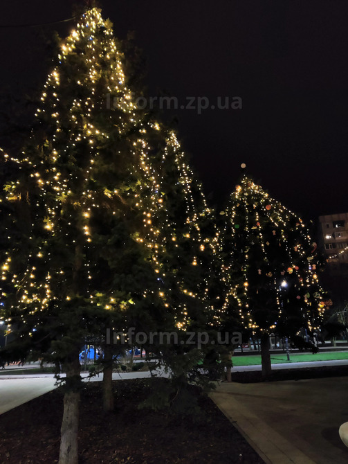 В Запорожье по улице Товарищеской, в Днепровском районе, украсили новогодние елки и включили праздничные гирлянды. Это первое такое оформление в микрорайоне.