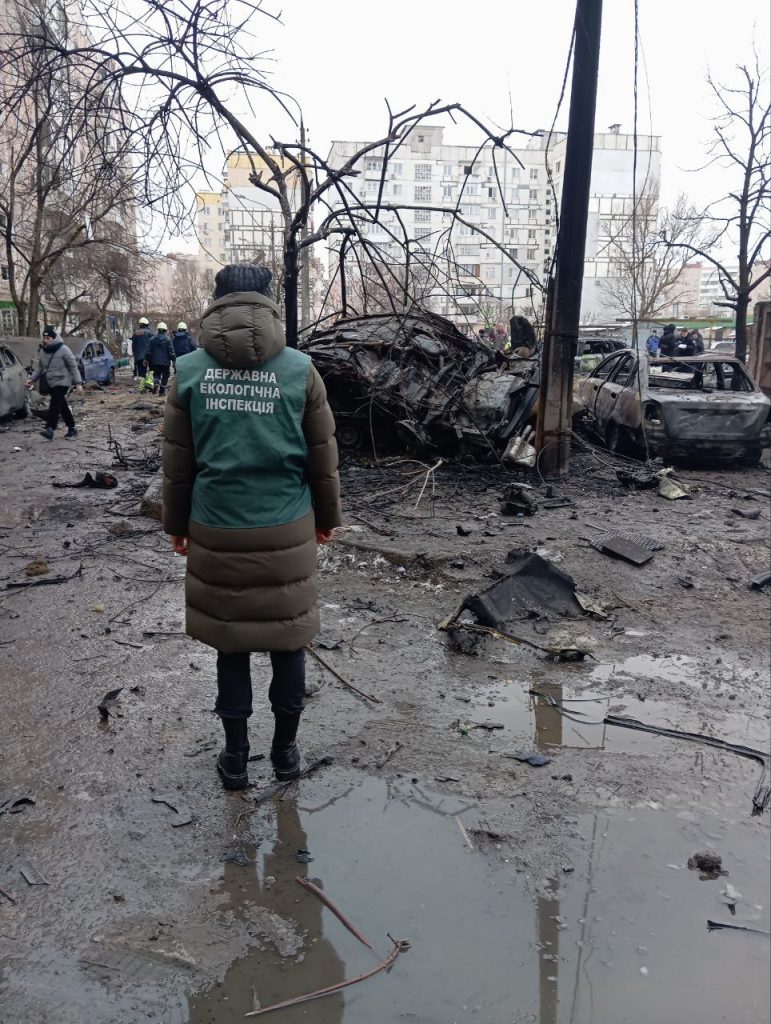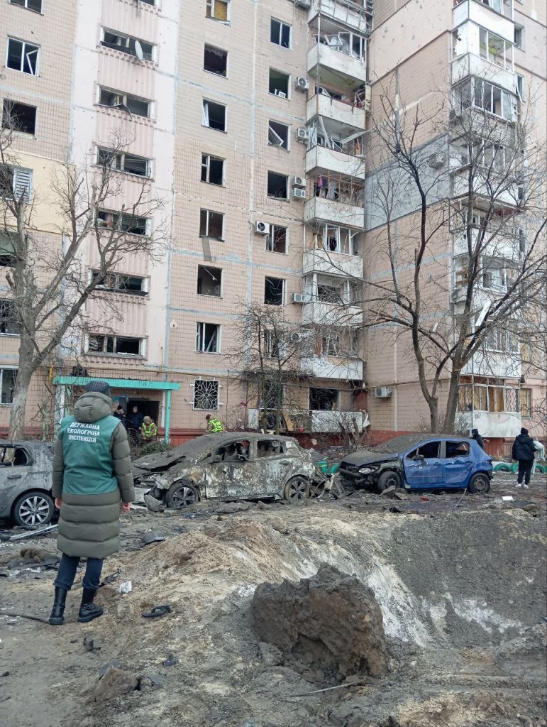 В результате обстрела армией РФ 28 января пострадала территория Космического района города Запорожье. Специалисты Государственной экологической инспекции Южного округа провели выездное обследование места происшествия.