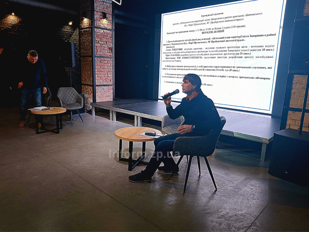 Заместитель директора департамента архитектуры и градостроительства Запорожского городского совета Леонид Тендитник сообщил, что в начале общественных слушаний по проекту «Детальный план территории города Запорожья в районе проспекта Маяковского (бульвар Марии Примаченко), 30 / Прибрежной автомагистрали» присутствовали 96 человек.