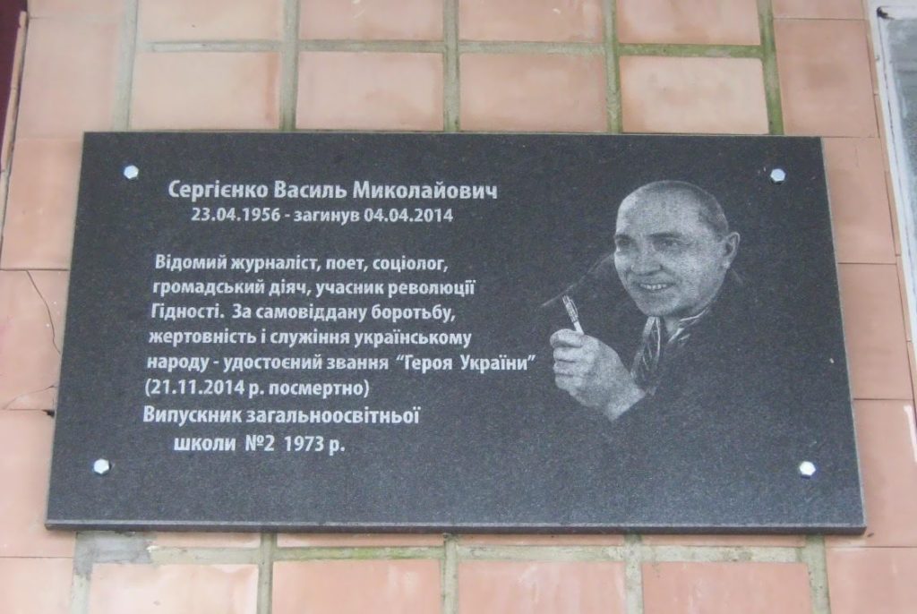 Еще одну улицу переименовали в честь журналиста Василия Сергиенко, а дома установили мемориальную доску в его честь. Василий Сергиенко родился в Корсунь-Шевченковском Черкасской области, но значительную часть жизни связал с Запорожьем. Работал корреспондентом газеты «Запорожская правда» и был активным участником местных общественных движений, в частности, Украинской республиканской партии и движения «Защитим Хортицу». С первых дней он присоединился к Революции Достоинства. 5 апреля 2014 года его тело обнаружили в лесу в 12 км от Корсуня-Шевченковского.