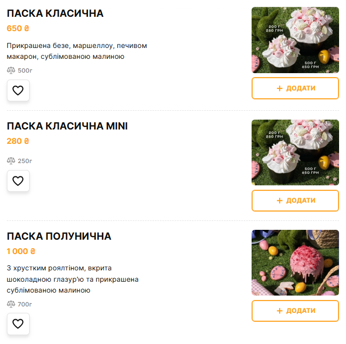 Паски в ресторані «Dolce Vita». Скриншот з сайту закладу