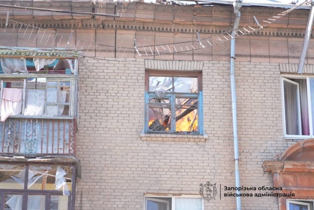 Сегодня, 17 апреля, российские войска атаковали Запорожье беспилотниками. В результате удара возник пожар, зафиксированы разрушения.