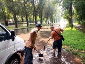 Запорожские коммунальщики продолжают устранять последствия сегодняшнего ливня.