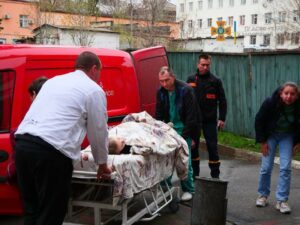 26 апреля скорая помощь в сопровождении специалистов ГСЧС транспортировала женщину в Запорожье.