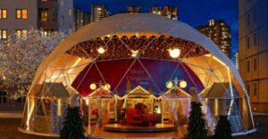 Еще на локации обустроили фотозоны и установили фуд-корты с рождественскими угощениями.