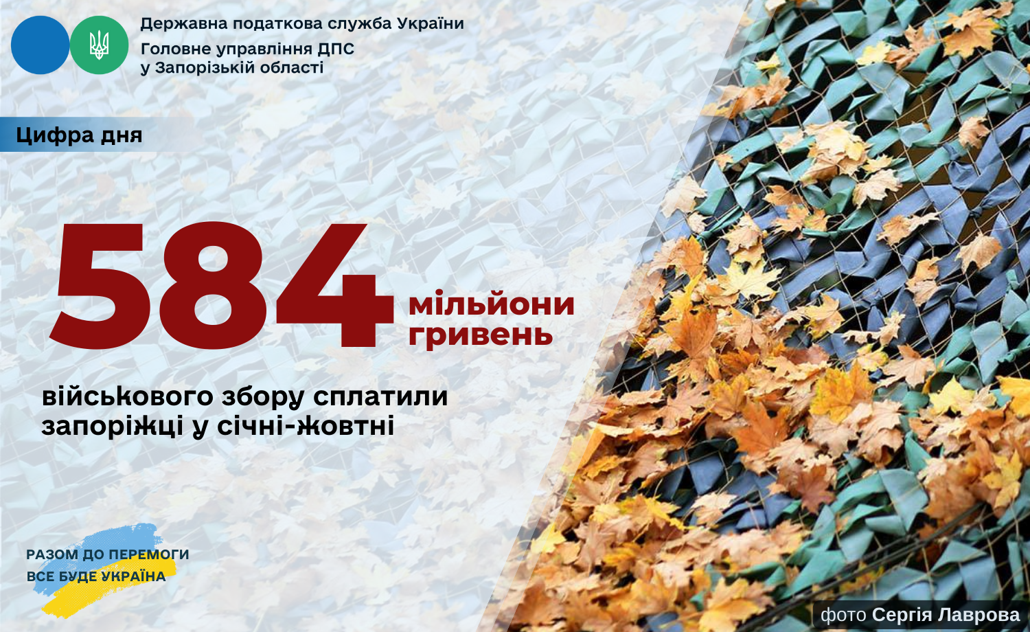 З початку року запорізькі платники податків перерахували до державного бюджету 584 мільйони гривень військового збору.