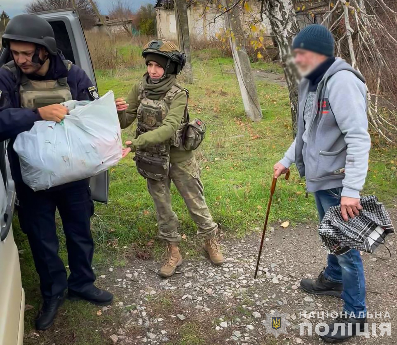 Російські обстріли зруйнували будинок 55-річного місцевого мешканця. Пізніше він втратив зв’язок з родиною. Поліцейські змогли вивезти чоловіка на безпечну територію.