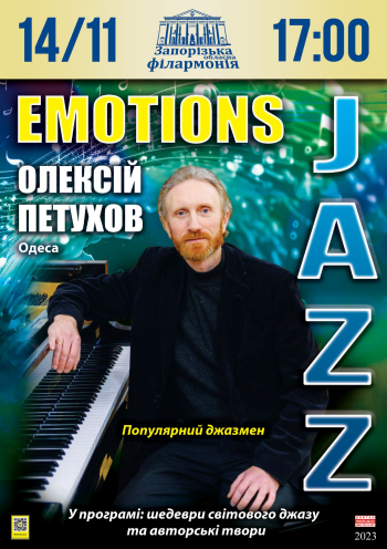 У Запорізькій обласній філармонії вперше виступить відомий український джазовий піаніст і композитор Олексій Петухов. Він підготував нову авторську програму “EMOTIONS”.