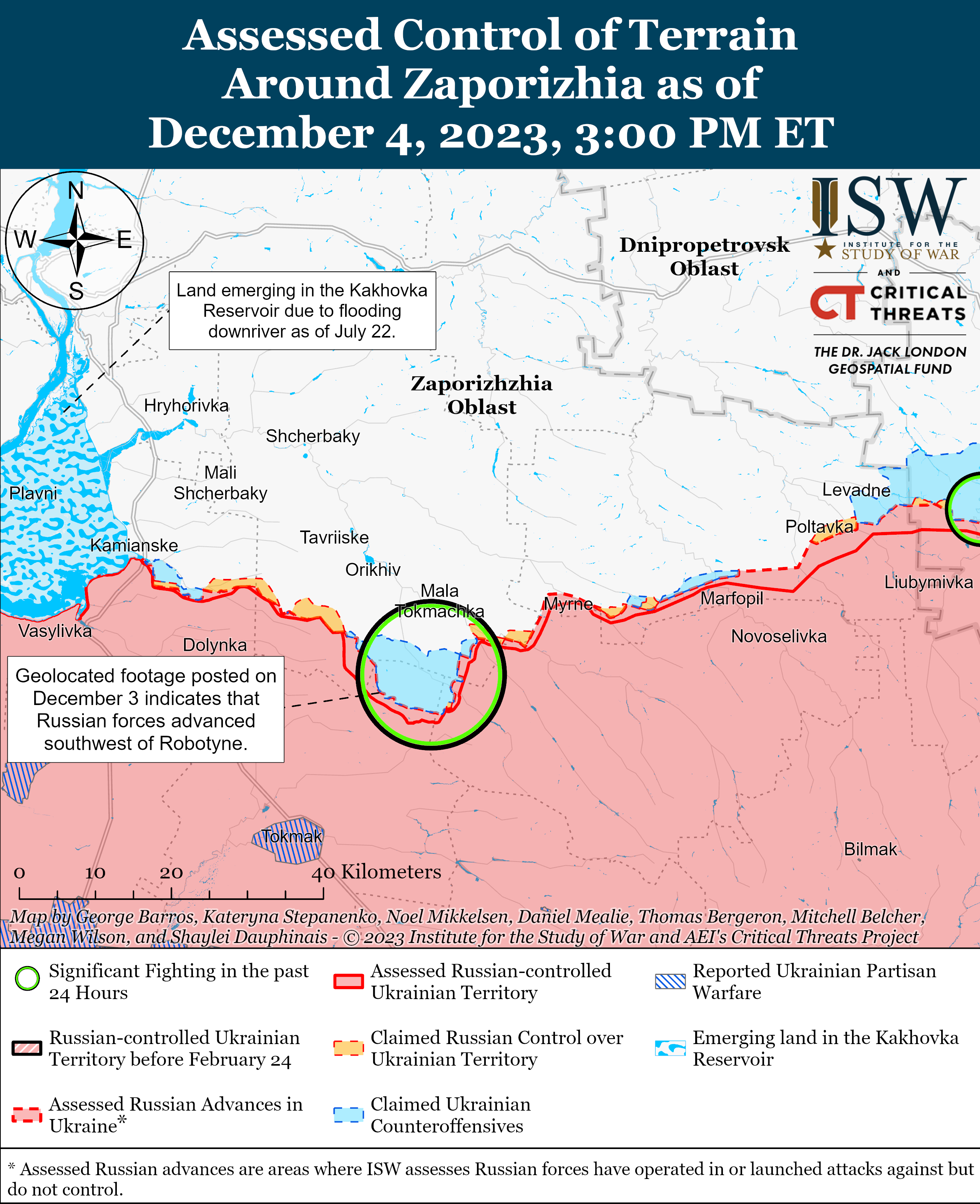 Українські війська продовжували наземні атаки, але не досягли жодних підтверджених успіхів у західній частині Запорізької області.