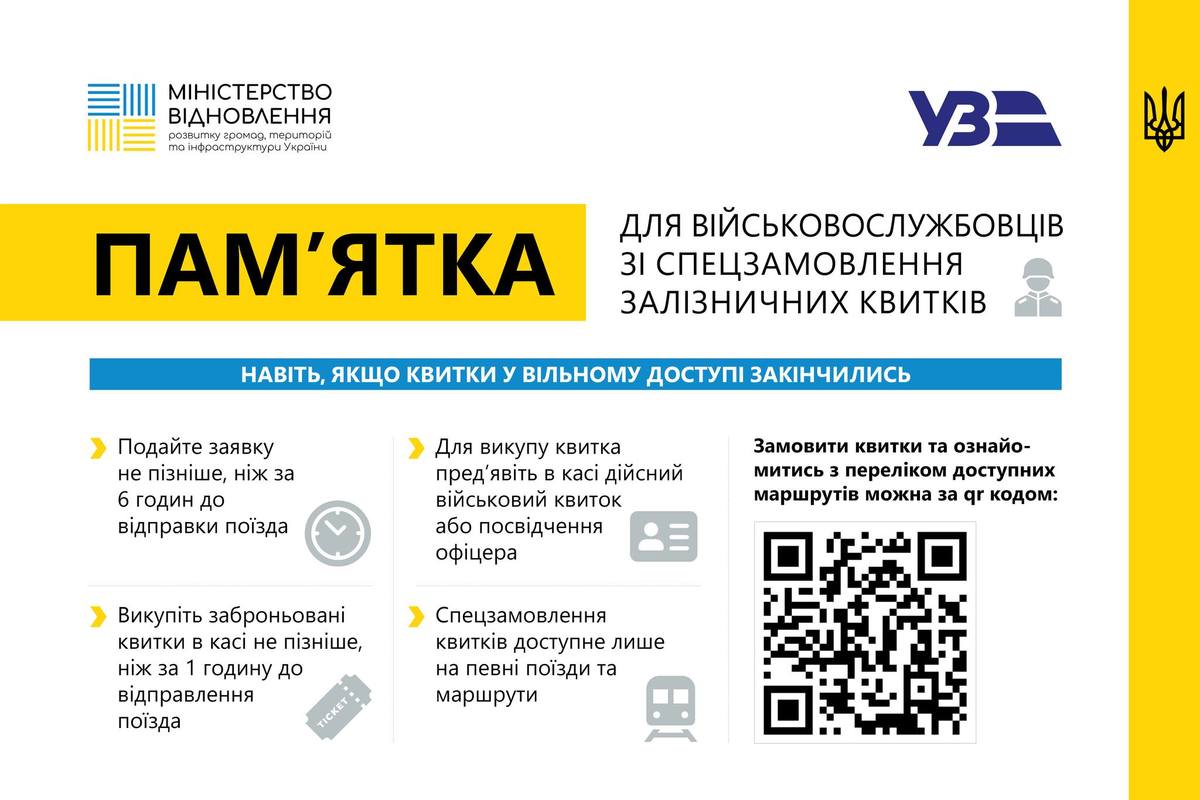 Спецзамовлення квитків доступне на 17 поїздів, які найпопулярніші серед військовослужбовців. Зокрема, це маршрути до міст, наближених до зони ведення бойових дій та зворотно.