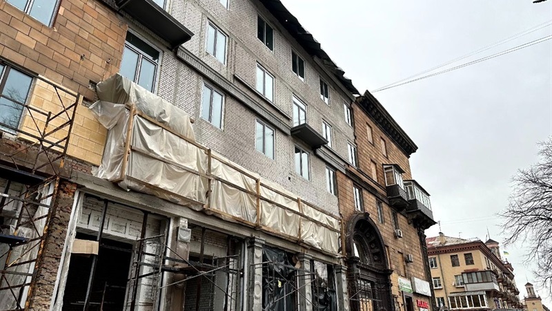 У Запоріжжі на проспекті Соборному, 151 продовжують робити ремонт квартир після ракетного удару по будинку.