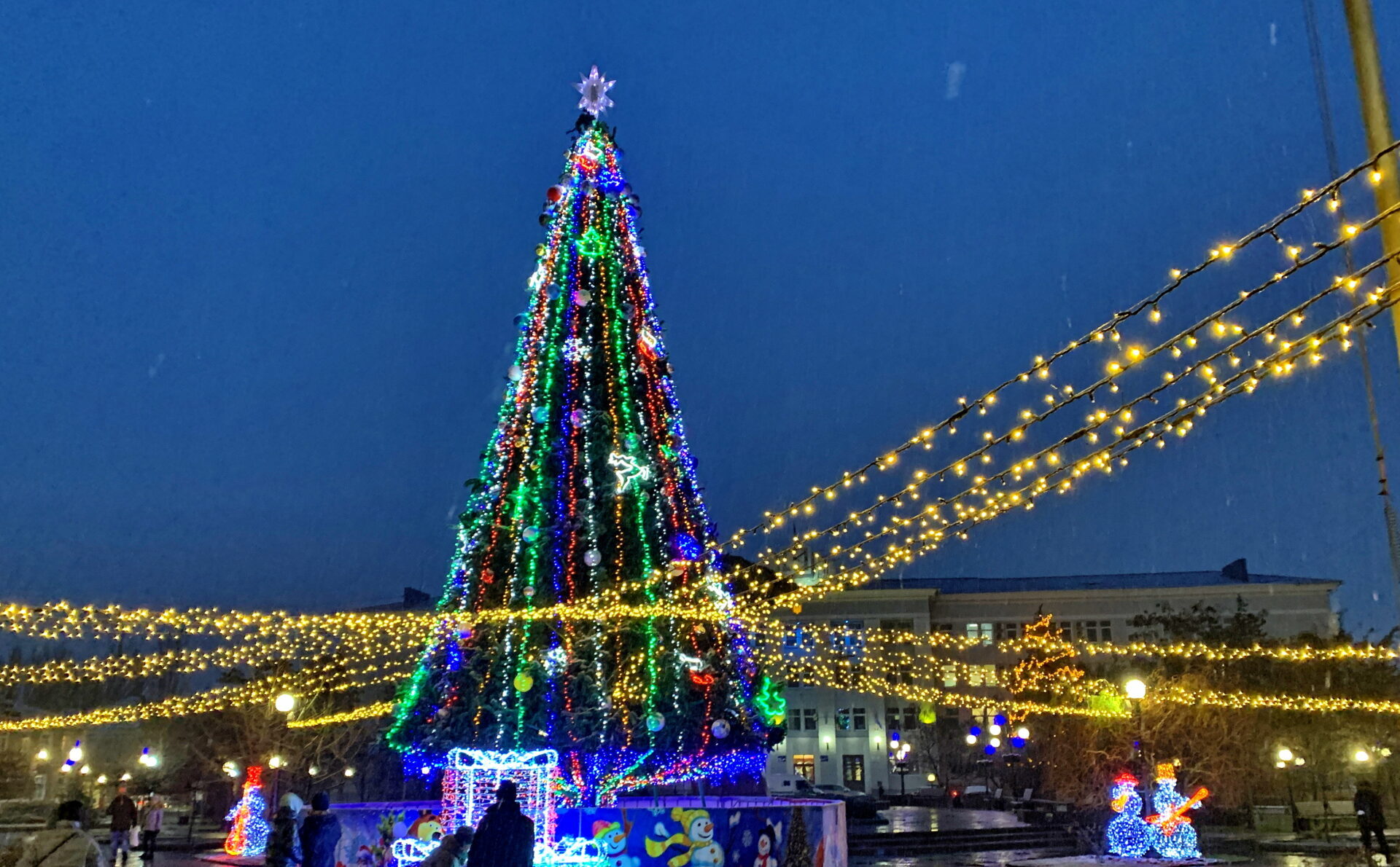 22 грудня 2021 року в Бердянську запалили новорічну ялинку на площі Єдності. Разом зі святковим деревом засяяло вогнями і місто в гірляндах.