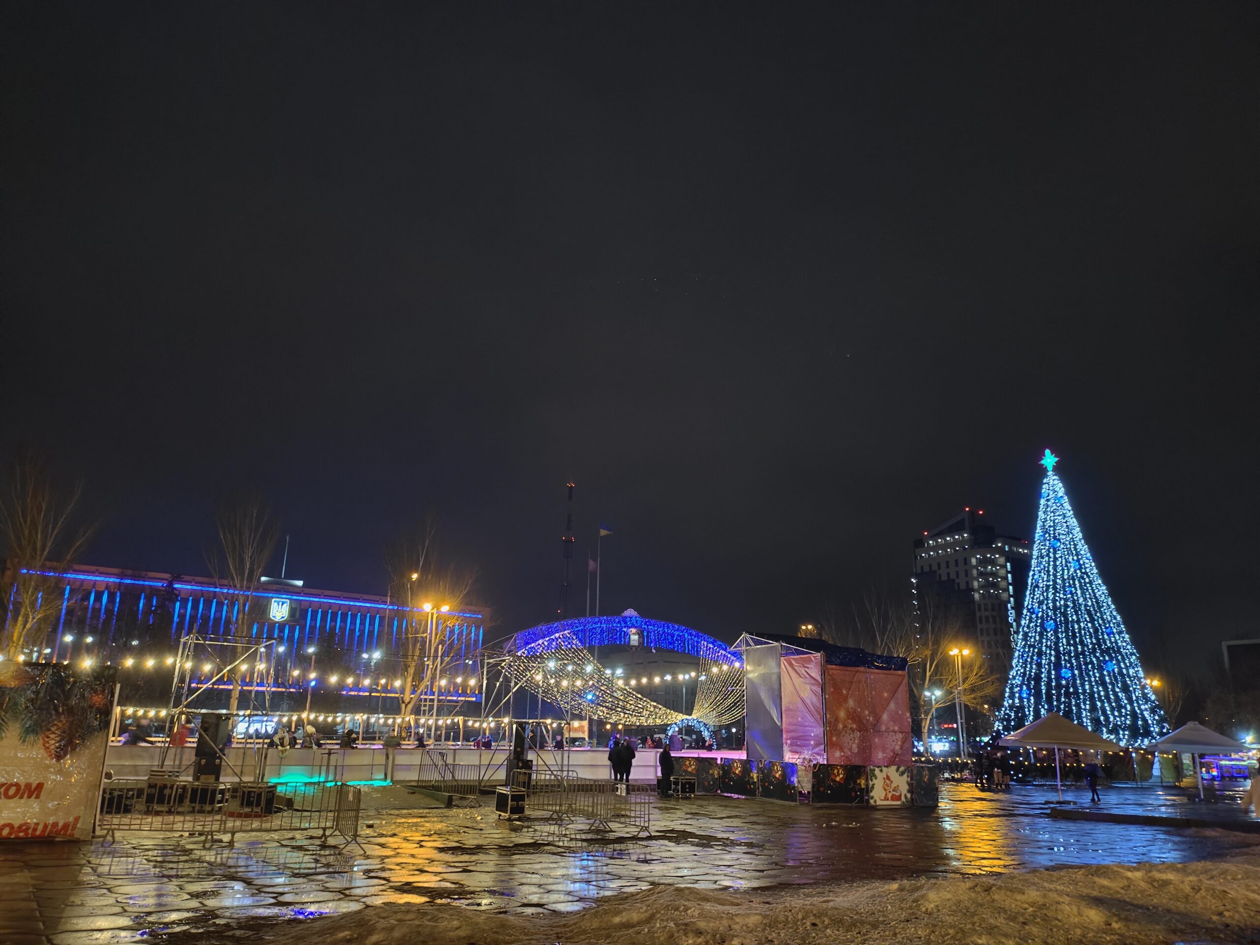 Запоріжжя перед Новим роком пишно прикрасили вогнями та ялинками.