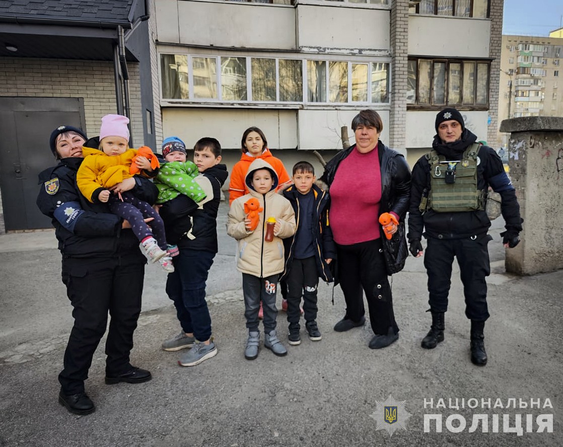 Триває евакуація родин з прифронтових міст Запорізької області. Дві сім’ї, в яких виховується шестеро дітей, через постійні обстріли були змушені фактично жити у підвалі. Поліцейські вивезли їх з-під вогню до Запоріжжя.