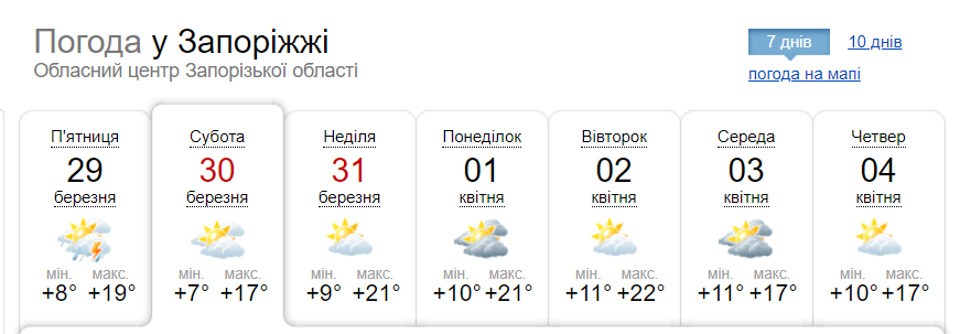Погода в суботу 30 березня
