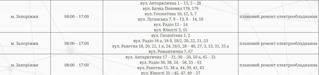 У Запоріжжі за деякими адресами сьогодні, 12 квітня, будуть відключати електроенергію. Це пов’язано з плановими ремонтними роботами.