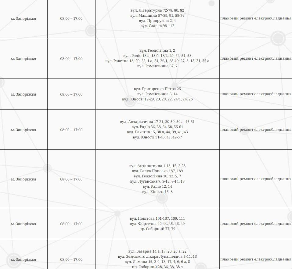 У Запоріжжі за деякими адресами сьогодні, 15 травня, будуть відключати електроенергію. Це пов’язано з плановими та терміновими ремонтними роботами.