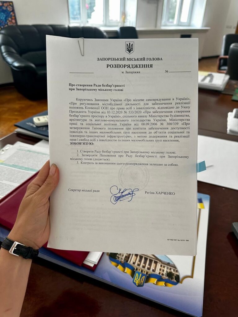 У Запоріжжі створили Раду безбарʼєрності при Запорізькому міському голові. Орган буде залучений до процесів реалізації стратегії безбарʼєрності на 2024-2030 роки.