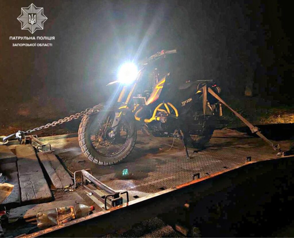 Нещодавно у Запоріжжі патрульні поліцейські помітили на тротуарі водія мотоцикла FUEGO, який порушував правила дорожнього руху. Правоохоронці попросили його зупитись, однак мотоцикліст проігнорував. Після чого водій впав з мотоциклу та отримав пошкодження.