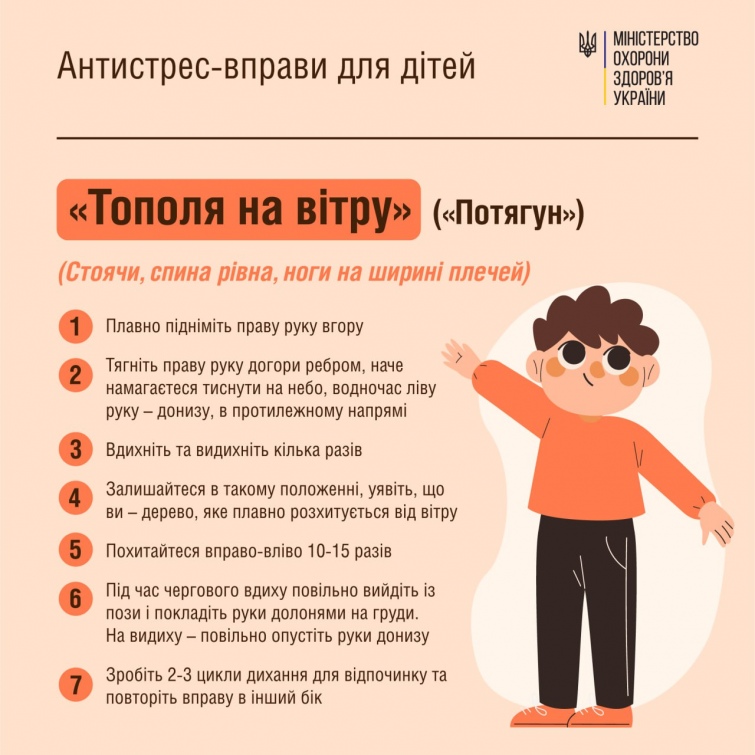 Аби зменшити стрес, варто також виконувати дихальні техніки, техніки тілесної релаксації та емоційної стабілізації.