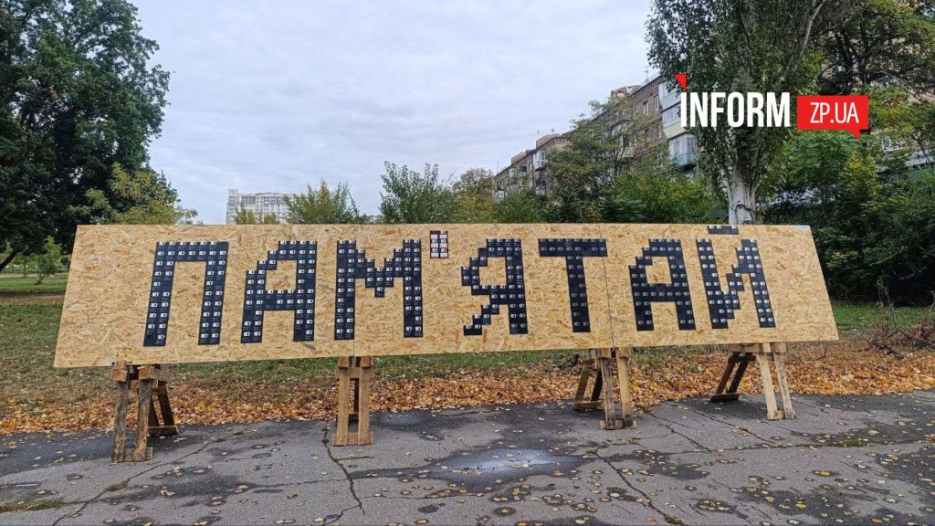 У сквері Тарасова в Запоріжжі з’явилася нова інсталяція під назвою «Пам’ятай». Це стенд, на якому написані імена загиблих у російсько-українській війни.