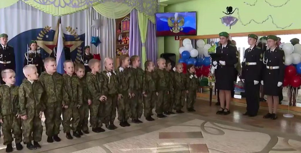 Що стосується самої РФ, то на початку жовтня 2025 року російське видання “Важливі історії” опублікувало інформацію, що з початку повномасштабної агресії проти України, як мінімум, у 57 населених пунктах 26 російських регіонах відкрилися спеціальні кадетські групи на базі дитячих садків. Діти 4–7 років беруть участь у конкурсах стройової підготовки та пісні, відточують “правильність маршування в колоні та чіткість у здачі рапорту”, займаються рукопашним боєм та вогневою підготовкою, відвідують міські заходи в парадній формі, плетуть маскувальні мережі та зустрічаються з російськими військовими. За інформацією видання, влітку 2025 року російська влада анонсувала закон про єдині правила виховання кадетів у всіх регіонах для підготовки “кадрової еліти для військової і державної служби”, який торкнеться і дошкільнят.