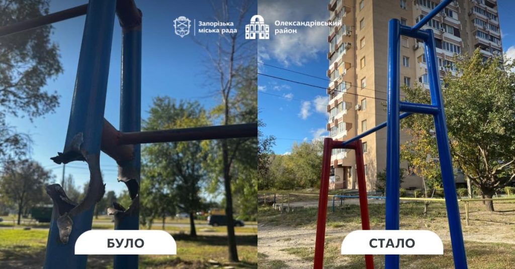 У Запоріжжі комунальні служби відремонтували дитячий майданчик на вулиці Козачій, 1, який постраждав від російського обстрілу.