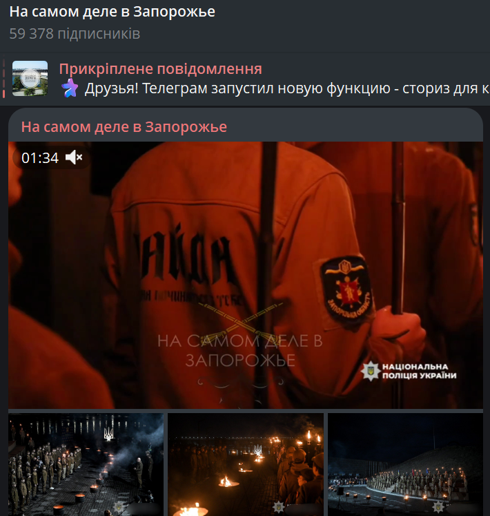 Вже за кілька днів потому, 20 жовтня окупаційний телеграм-канал «На самом деле в Запорожье» опублікував допис «Середньовіччя в XXI столітті: диявольський інкубатов укропатроітов». У дописі говорилося, що українська поліція нібито «відкриває секти Зелеюгенда», проводячи паларелі з нацистським Гітлер’югендом, а церемонію посвяти назвали «сатанинським балом чи шабашем відьм». Крім того, пропагандисти стверджували, що “Україні потрібні не інженери, не економісти та лікарі, а поліцаї, з дитинства привчені до того, що вони – це м’ясо… Готові викрадати та бити ухилянтів– “людей другого сорту”. Або добровільно здохнути у окопі”.