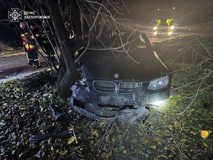 О 00:35 водій BMW не впорався з керуванням та врізався у дерево. На місце події прибули рятувальники. Вони відключили акумуляторну батарею транспортного засобу.
