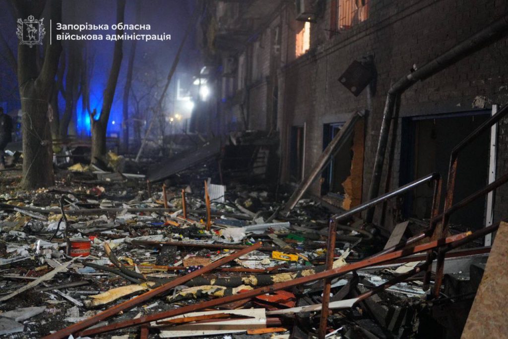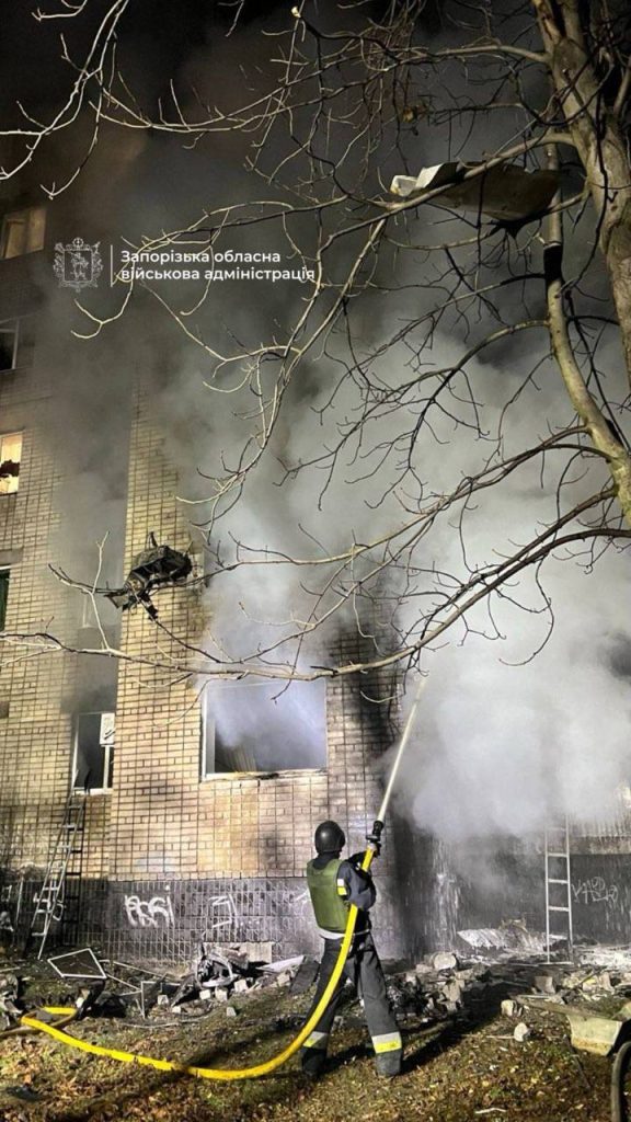 Сьогодні, 25 листопада, вночі російські війська атакували Запоріжжя безпілотниками. Зафіксовано пошкодження багатоповерхівок, гуртожитку, підприємства, магазину та масштабні пожежі. Кількість постраждалих зростає.