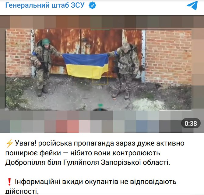 Це – фейк. За даними Генерального штабу України, жодного захоплення Добропілля не було. “Увага! російська пропаганда зараз дуже активно поширює фейки — нібито вони контролюють Добропілля біля Гуляйполя Запорізької області. Інформаційні вкиди окупантів не відповідають дійсності”, – повідомили в Генеральному штабі ЗСУ 4 грудня. За даними Генштаба, російська диверсійно-розвідувальна група скористалась погодними умовами і намагалася проникнути на околиці села. Українські військові оперативно виявили та знищили ДРГ. За інформацією ЗСУ, ще на підході до населеного пункту українські військові ліквідували трьох окупантів. Ще двох — імовірно тих, хто мав знімати псевдокадри з російськими прапорами в “захопленому” селі, — знищили трохи згодом. Опубліковане відео з місця подій демонструє роботу українських військовослужбовців, які впевнено знешкодили ворожих диверсантів та повернули ситуацію під повний контроль.