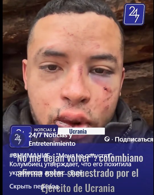По-друге, до допису доданий лінк на фейсбук, де розміщене відео з побитим колумбійцем, яке має титрування колумбійського медіа “24/7 Noticias y Entretenimiento” (24/7 Новини і Розваги), сторінка якого у фейсбуці з’явилася лише у травні 2025 року. Також викликає питання саме відео. Так, на ньому побитий молодий чоловік на ім’я Кундінамарка Каміло Мело каже, що він з Колумбії і що його утримують незаконно.