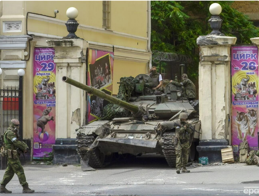 Так, цей дописа колумбійців і Київ розповсюдив телеграм-канал “На самом дєлє в Запорожьє”. До нього додали ряд фото, які не мають жодного стосунку до Києва. Зокрема, на одному з фото був зображений танк, який застряг у воротах цирку. Йдеться про танк ПВК “Вагнер”, який застряг у воротах цирку в Ростові-на Дону у червні 2023 року, коли російський злочинець, керівник ПВК “Вагнер” Євген Пригожин вчинив заколот і намагався дійти до Москви.