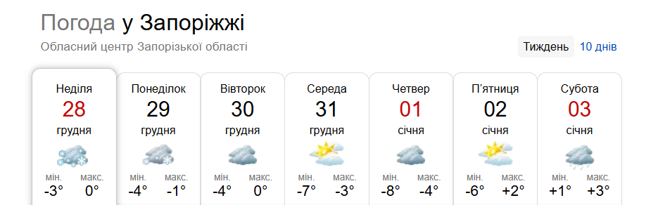 Справжня зима у Запоріжжі: прогноз погоди на тиждень