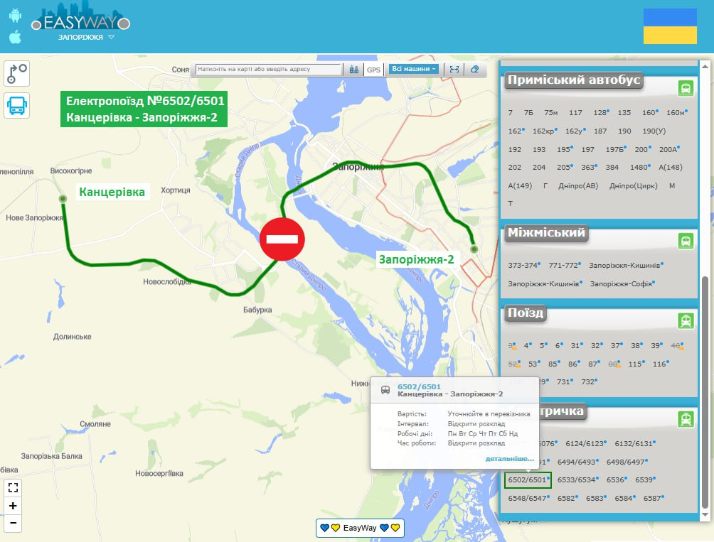 Електропоїзд №6502 сполученням Канцерівка – Запоріжжя-2 із відправленням о 06:30 тимчасово скасовують у вихідні дні.