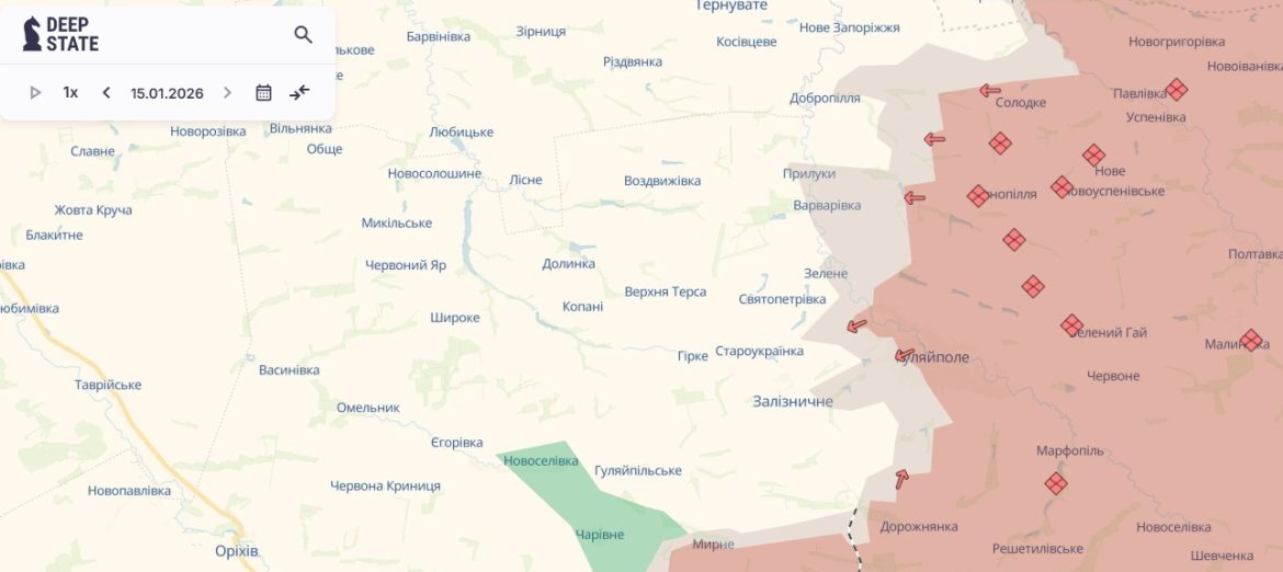 Минулої доби російські військові окупували село Красногірське Запорізької області, а також просунулись у Гуляйполі та поблизу села Привільного. Також фіксується просування біля села Залізнянського на Донеччині.