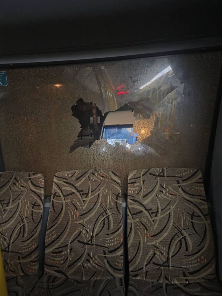 Розбите вікно у муніципальному транспорту 21 січня. Фото: КП “Запоріжелектротранс”