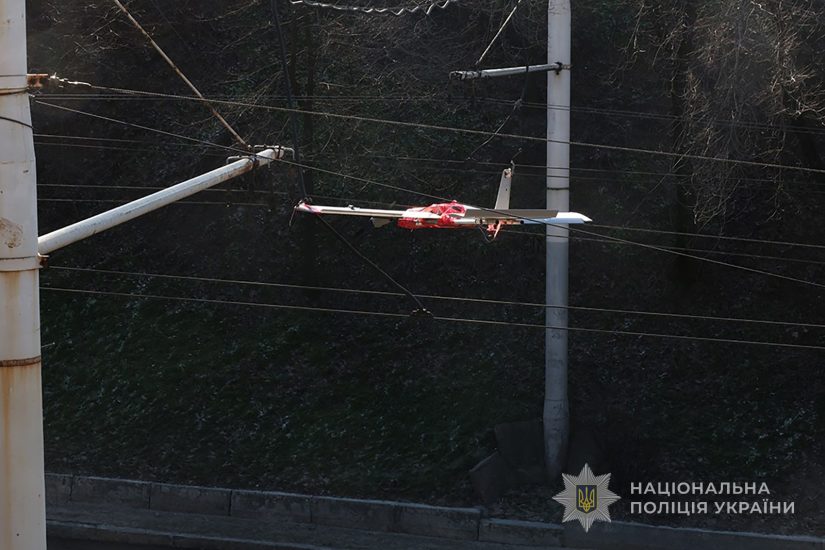 Сьогодні, 4 лютого, сапери знешкодили російський дрон «Молнія», який заплутався у високовольтних дротах над проїжджою частиною в одному з районів Запоріжжя.