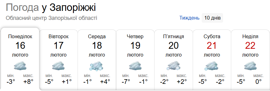 Головна » Суспільство » Хмарне небо, сніг та дощі у Запоріжжі: прогноз погоди на тиждень