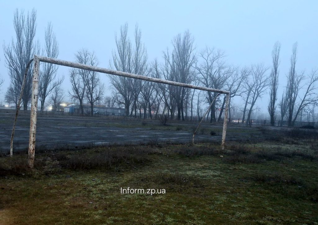 Футбольне поле давно не бачило гри. Замість рівного газону — нерівномірне полотно поля, яке влітку було вкрите бур’яном. Бігові доріжки втратили колір, розмітка стерлася.