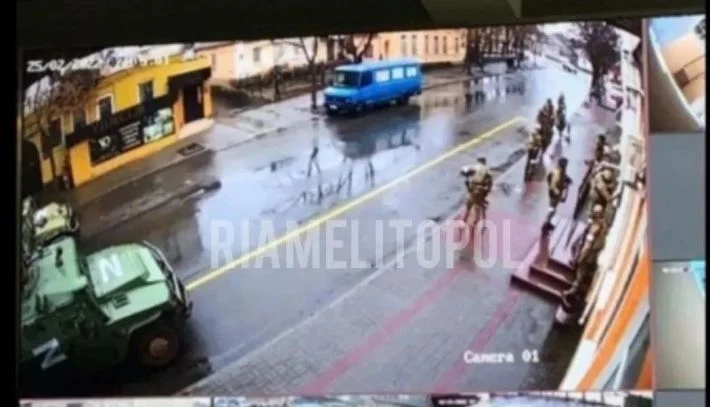 25 лютого до Мелітополя зайшла російська військова техніка. Окупанти атакували будівлі місцевого управління СБУ та міської ради.