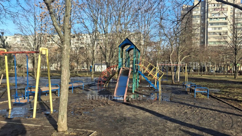Один із найбільших і найвідвідуваніших у місті парків Запоріжжя зустрічає відвідувачів не свіжим газоном, а розбитими ґрунтовими доріжками та водою, що стоїть просто під ногами. Після танення снігу парк перетворився на суцільну смугу перешкод – із багнюкою, льодом та зношеними лавками.