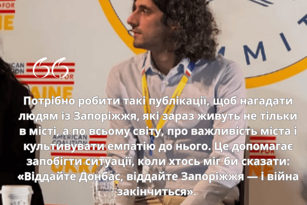 Тому я вважаю, що люди, які пов’язані із Запоріжжям і живуть за кордоном, мають докладати зусиль, щоб культивувати емпатію до міста у різних напрямках», — говорить запоріжець.