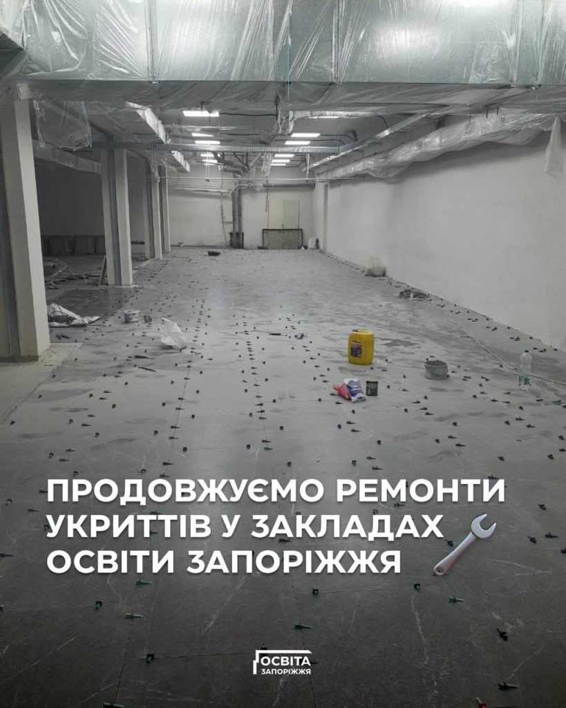 У закладах освіти Запоріжжя триває комплексне переобладнання укриттів для забезпечення можливості очного навчання в безпечних умовах.
