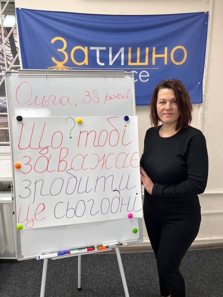 Містянка Ольга спочатку привела до простору сина заради спілкування з однолітками, але згодом і сама звернулася по психологічну підтримку. Жінка зізнається, що почувалася роздавленою через постійні обстріли Запоріжжя, складнощі з роботою та розлуку з батьками.
