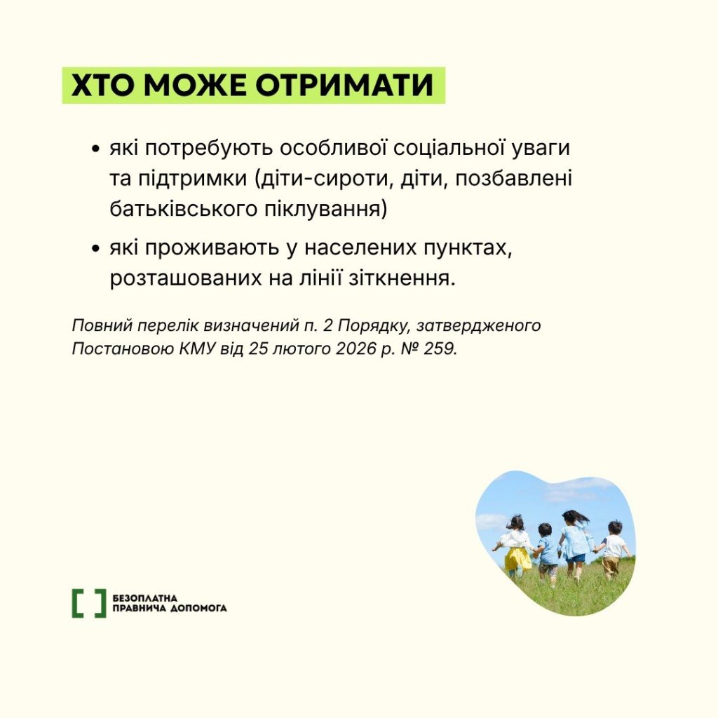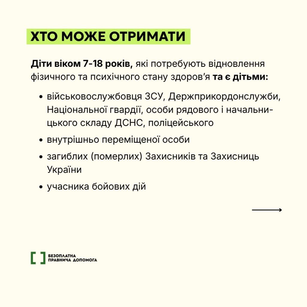 У 2026 році діти військовослужбовців, загиблих захисників та захисниць, внутрішньо переміщені діти, а також діти, які проживають у населених пунктах на лінії зіткнення, можуть безоплатно отримати послуги з оздоровлення та відпочинку.