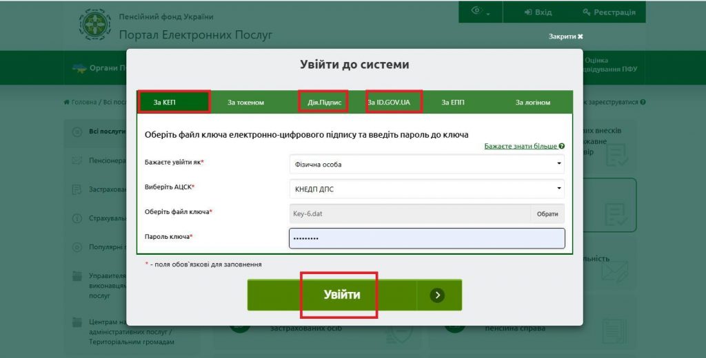 - зайти на сайт portal.pfu.gov.ua та натиснути «Вхід»