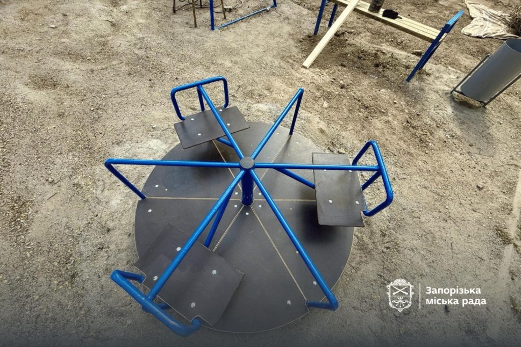 - У Запоріжжі на дитячому майданчику в сквері імені Марії Примаченко комунальні служби встановили раніше демонтовану канатну карусель.